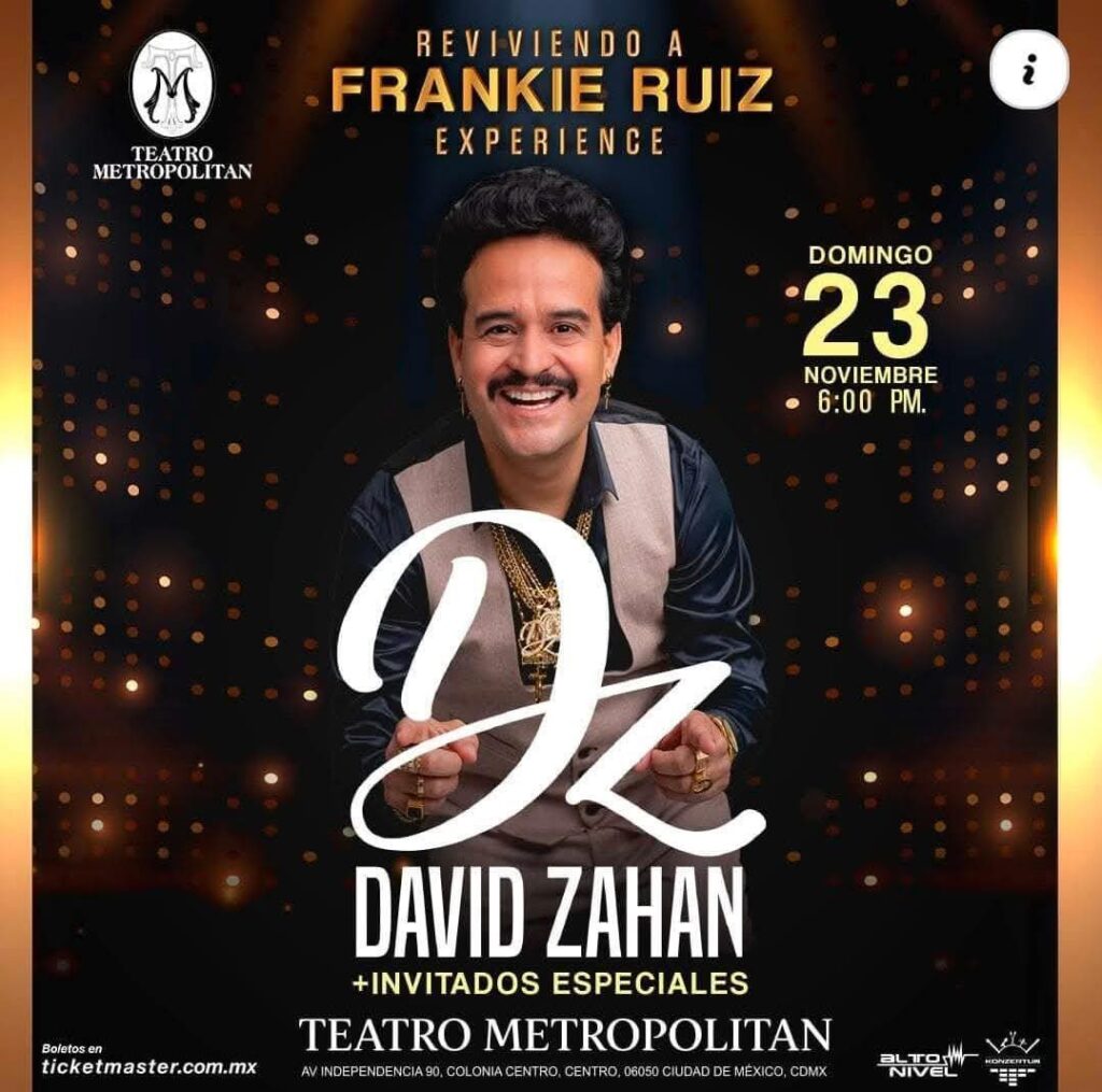 El teatro que ha visto desfilar a gigantes de la música en la Ciudad de México se prepara para recibir, este domingo 23 de noviembre a las 18:00 horas, una de las veladas salseras más esperadas del año. David Zahan, considerado el heredero espiritual de la interpretación de Frankie Ruiz, llegará al Teatro Metropólitan con su espectáculo “Revivendo a Frankie Ruiz Experience”, un viaje profundo hacia la memoria sonora del llamado Papá de la Salsa, en un concierto que promete emoción, homenaje y una fidelidad artística pocas veces vista en el género. Los boletos ya se encuentran disponibles a través del sistema Ticketmaster y en las taquillas del inmueble.