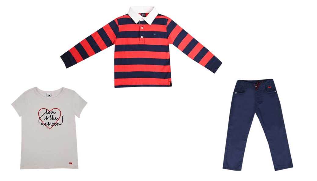 La colección se complementa con una selección de prendas para toda la familia —playeras, polos y pantalones— que mantienen la esencia clásica y versátil de la marca, reinterpretada en una paleta de colores vibrante y perfecta para la temporada. Los diseños permiten crear looks coordinados, ideales para celebrar el Día del Amor y la Amistad en familia.